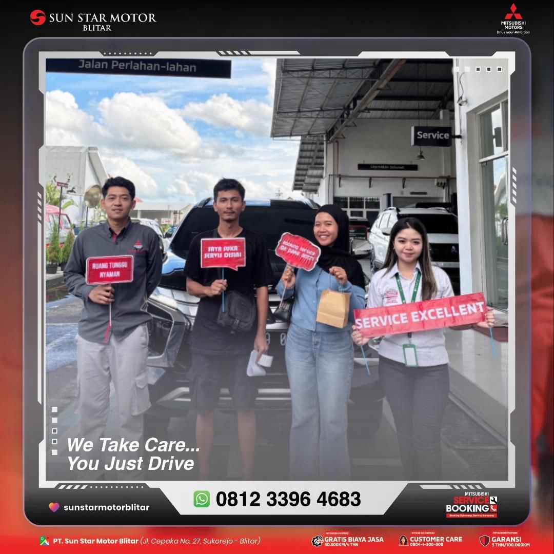 penyerahan Kendaraan Setelah Service di PT SUN STAR MOTOR BLITAR / PROMO MITSUBISHI / Oleh cso blitar Setelah perawatan terbaik, saatnya kembali ke jalan 😊Terima kasih sudah mempercayakan kendaraan Anda kepada PT Sun Star Motor Blitar 🚗✨Selamat melanjutkan perjalanan dengan nyaman!