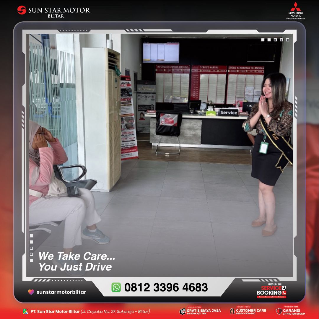 aKTIVITAS CS SERVICE DI PAGI HARI KETIKA MENERIMA KONSUMEN DI PENERIMAAN SERVICE / PROMO MITSUBISHI / Oleh cso blitar Kenyamanan Anda adalah prioritas kami 🙏Tim CS PT Sun Star Motor Blitar selalu siap memberikan pelayanan ramah dan informatif di area penerimaan service 🚗✨
